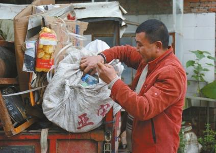 早上出門,下午回家,運(yùn)氣好,收的廢品能把火三輪裝滿,運(yùn)氣不好,連開張都難,“一斤廢紙,我收的是三毛,我賣給收購站是四毛,只賺一毛錢。”他說。