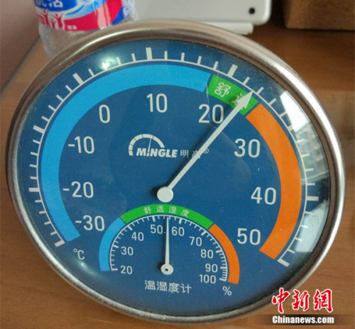 11月17日,北京天通苑一居民家中溫度計(jì)顯示室溫超過20度。中新網(wǎng)邱宇 攝