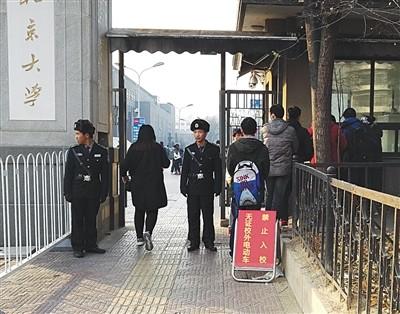 3日,北大東門口豎起的禁止牌,無證校外電動車禁止進入學校。新京報記者 沙璐 攝