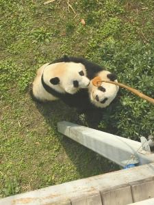 剛到成都時,美國長大的“美輪”“美奐”還不太適應家鄉的語言和食物。飼養員說四川話它們反應不大,說英文口令反而反應明顯!懊缞J,過來!”面對飼養員的呼喚,美奐毫無反應。“come here!”當聽到英文指令,美奐馬上回過頭,尋找聲音的來源。