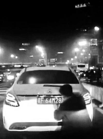在北京一鬧市區,一輛假冒京牌的白色奔馳汽車在眾目睽睽之下公然更換尾部號牌。網友在微博上發布舉報視頻后,北京交管局涉車隊聯合朝陽交通支隊迅速核查。3天后,涉事司機到交管部門接受詢問,并承認使用其他機動車號牌的違法行為。