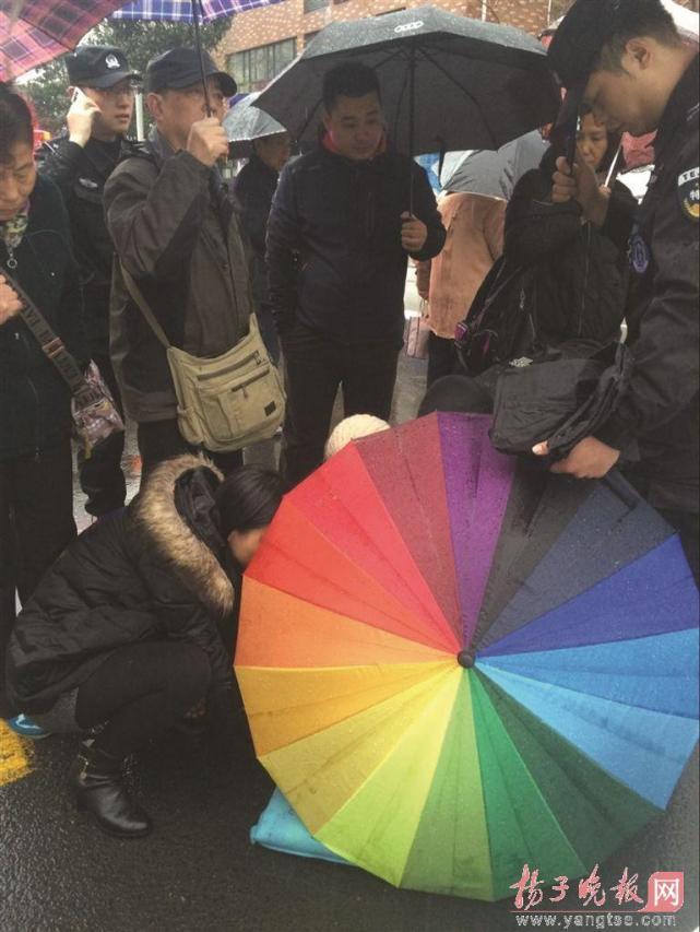 13日上午8點30分左右,南京北安門街發(fā)生一起交通事故,一位老太太過馬路時被一輛轎車撞倒,由于下著雨,執(zhí)行任務(wù)的特警路過此處和路人一起撐起溫暖的雨傘(如圖),隨后趕來的120將老人送往軍區(qū)總醫(yī)院救治。