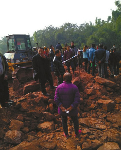 “7日早上8點過,正好在家對面的施工點開始施工,聽得到推土機的作業聲音。村主任羅松找到我,說施工人員還要施工一天半,今天要把已經推出來的地方,降低坡度,且推出來的土石不會推落在我的田地里,讓我勸勸母親不要去阻工。村主任這樣說,我就答應了,隨后我就到下長鎮趕集去了!绷_忠成說,等我接到親戚電話后,慌忙趕回家時,慘劇已經發生了。