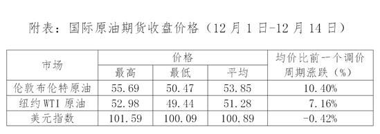 本輪成品油調價周期內(12月1日-12月14日),受歐佩克達成超預期限產協議影響,國際市場原油價格大幅上漲,根據國家發改委價格監測中心的數據顯示,布倫特、WTI原油期貨平均價格比上輪上漲11.49%。