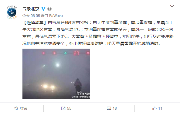 北京市氣象局官方微博06時發(fā)布消息稱,21日早晨霧霾開始減弱消散。