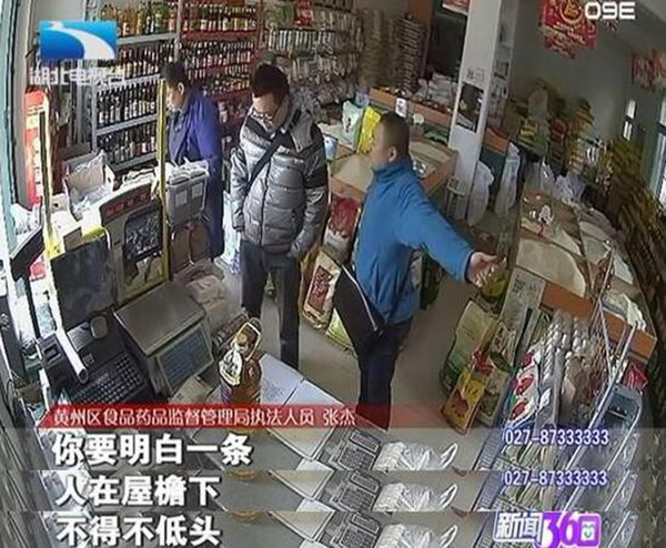 而湖北電視臺此前曝光的監控視頻則顯示,執法人員在執法過程中,以“樣品調查”為由,從一家小商店一次性拿走了36瓶食用油。