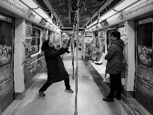 昨天,乘客在16號線的冬奧會主題車廂內(nèi)留影。北京晨報記者 王巍/攝