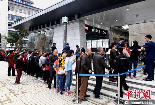 資料圖 民眾排長隊(duì)領(lǐng)取乘車體驗(yàn)券。 中新社記者 劉可耕 攝