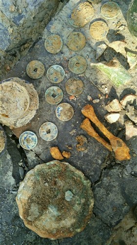 讓人遺憾的是,墓室頂部有一個盜洞,考古人員推測,盜墓賊從頂部打洞鉆入墓室,隨后從底部扒開磚頭,穿越到墓室的另一面。盜墓賊的到來,使得墓室一側垮塌,里面一些陶器也被搗毀,棺和尸骨已朽。他們取走了墓中的金銀器,一些錢幣卻散落在泥土里!霸谒拇ㄟ@種酸性土壤的環境下,這些錢幣保存得還是比較完好!睋脊湃藛T介紹,其中發掘了20多枚銅錢,可以辨認出上面有“崇寧通寶”字樣。據了解,“崇寧通寶”上的書法清秀骨瘦,鐵劃銀鉤,是宋徽宗趙佶“瘦金體”存留世間的真實顯現。宋徽宗在書法上獨辟蹊徑,自創“瘦金書”,并將此書體文字鑄于錢上。