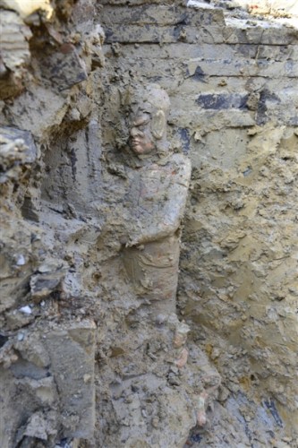 1月13日,在二仙橋公園工地上,一米多厚的泥土下,一座由磚頭堆砌起來的墓穴讓工人們感到驚奇。隨著泥土慢慢清理出來,這座長3.15米、寬2.4米、高1.3米的墓穴露出了全貌。