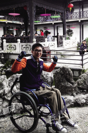 出生于1986年的韋富俊本該和絕大多數80后一樣,上大學、找工作、結婚生子,但是他的人生軌跡在2003年改變了。當時即將參加高考的韋富俊不慎從高處摔下,脊椎損傷造成雙下肢癱瘓。“我從小最喜歡的課程是歷史,夢想就是當一名歷史老師,到高三時,成績一直都還不錯。可是當我清醒的那一刻,我意識到,一直以來的夢想破滅了。”在五鳳口韋家園的家中,韋富俊面對記者的采訪回憶起往事。