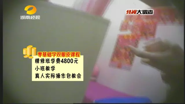 根據網絡廣告,記者來到株洲的“華莉”微整形培訓機構表示想要參加雙眼皮課程。這里的負責人肖姐十分警惕,在多番核實記者身份后,最終同意記者約見總負責人劉老師。這位劉老師告訴記者,零基礎交錢就可以參加培訓,機構的工作人員表示精修班學費4800元,小班教學真人實際操作包教會。