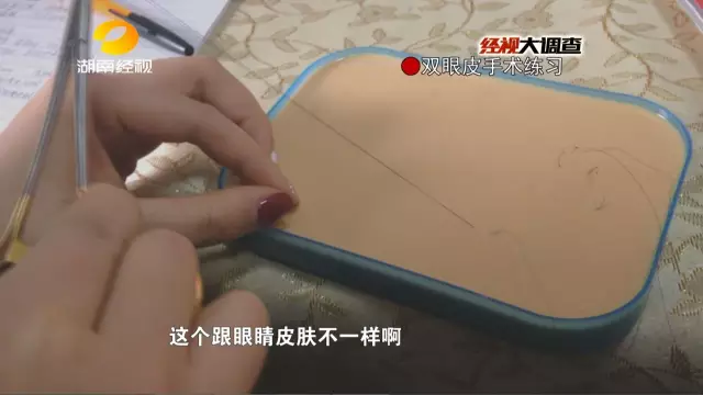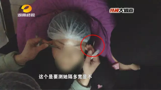學了幾天后,劉老師告訴學員將有機會看到雙眼皮真人手術實操。這位顧客專程從外地趕來做雙眼皮,為了迎接春節讓自己變得漂亮點。手術前,劉老師要測量一下這位女士的雙眼皮需要多寬。劉老師竟然不用尺子用牙簽,并表示這是她自己獨創的方法。