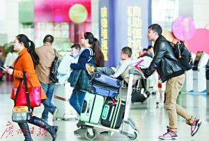 春運期間,乘客在白云機場趕飛機。