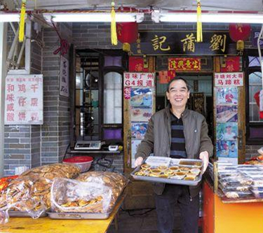 在西關(guān)大屋前,街坊鄰里預(yù)訂的各種糕點(diǎn)一出爐,馬上就被取走,從香港等地來(lái)的游客也會(huì)購(gòu)買馬蹄粉、雞仔餅、鮑魚酥等年貨。劉翠云和嫂子在鋪門前招呼著客人,劉老太坐在門口看熱鬧,開心地和熟人打招呼。“過(guò)年了,人來(lái)人往,很高興!”看著兒孫滿堂、顧客盈門,劉老太說(shuō),過(guò)年最重要就是一家人團(tuán)團(tuán)圓圓,這比什么都可貴。