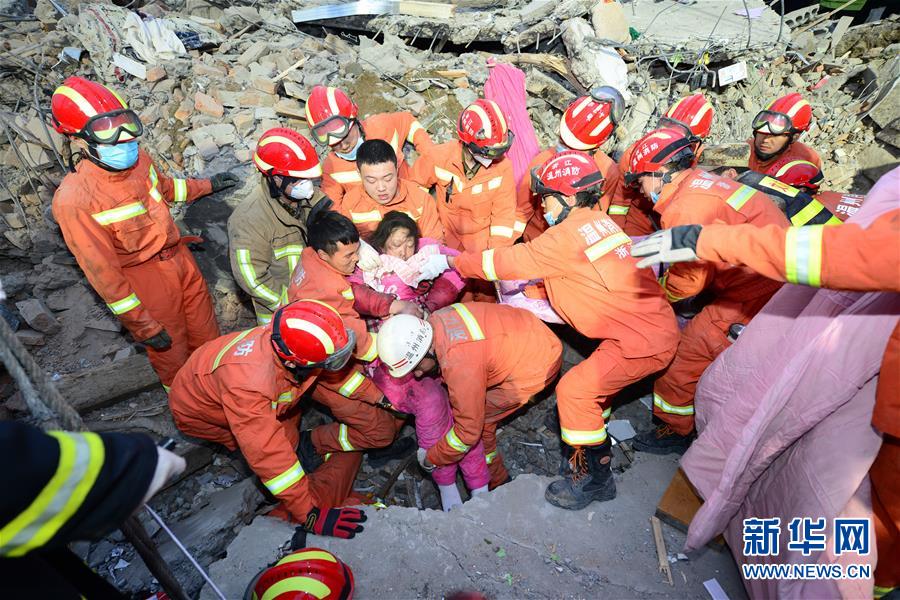 2月3日清晨,在浙江溫州文成民房倒塌事故現(xiàn)場,救援人員救出第二名幸存者。