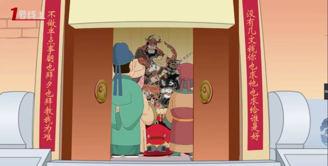 《六月說過年》也是我們擔當傳承和教育使命的一次嘗試,動畫中出現的眾多春聯、對聯都是我們精心挑選的,其中絕大部分都是傳統常見的經典春聯,也有個別的屬于詼諧幽默,不見得有多么經典,但也能看出民間的許多智慧。比如財神廟門上的對聯“沒有幾文錢你也求他也求給誰是好,不做半點事朝也拜夕也拜教我為難”,看完讓人忍俊不禁,細思量幾成真理:與其坐等賜福難為財神,不如擼起袖子實干興邦。求神不如求己!類似的還有灶神旁的對聯“上天言好事,回宮降吉祥”和古戲臺上的對聯“欲知世上觀臺上,不識今人看古人”,寥寥數字就把敬神的內涵和看戲的本質說清楚了,真是神來之筆。