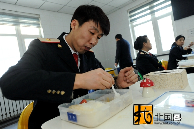 午餐時間到了,“牛三多”狼吞虎咽地吃完后返回售票崗位。他說,這樣可以讓其他職工多休息一會兒。
