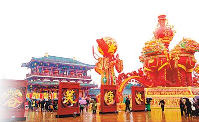 今年的大唐芙蓉園元宵燈會活動以生肖“雞(鳳)”為主題,展示了“鳳舞九天”“大吉(雞)大利”等彩燈形象。園區內主環道沿途布置了“九曲燈陣”“張氏風箏”“陜西花饃”等燈組,游客可以參與互動體驗,展示了陜派非物質文化元素。