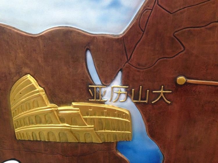 網友“小劉”說,在這幅題為《傳遞》的文化墻上,伊拉克的巴格達標到了伊朗,埃及的亞歷山大和開羅標到了沙特阿拉伯,希臘的雅典標到了土耳其,意大利的羅馬又標到了希臘。