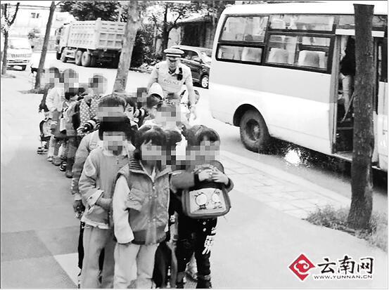去年9月7日校車被查處后,交警安排轉(zhuǎn)運小朋友。