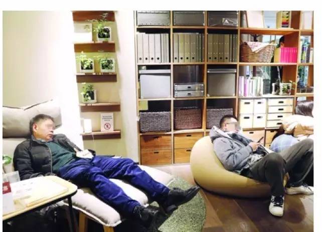 MUJI淮海旗艦店的二樓有著一片家居裝飾的展示區,為了讓顧客有更好的購物體驗,幾乎每一家MUJI都會擺放些躺椅、沙發、餐桌,營造一種家的氛圍。而在商家臨時構建的“家庭區域”,一名男性消費者慢慢走向擺放在角落的單人躺椅,雙腳一抬躺了上去,舒舒服服地閉上了雙眼,很快便傳來了他輕微的鼾聲。
