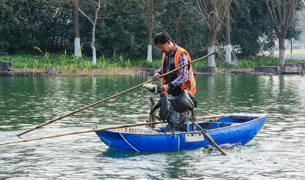 浙江在線寧波2月21日訊(浙江在線記者 王凱藝 通訊員 朱嬌嬌 陳秦 邵曉豪)一支由28只鸕鶿、3艘船只組成的生態捕魚小分隊一早就開始了一天的工作,在專業人員的吆喝下,只見一只只鸕鶿紛紛下水捕魚,不一會兒鯉魚、草魚等各種魚被捕撈上來,養護公司許工告訴記者,這些鸕鶿很是給力,還捕獲了一條10來斤的大鯉魚。