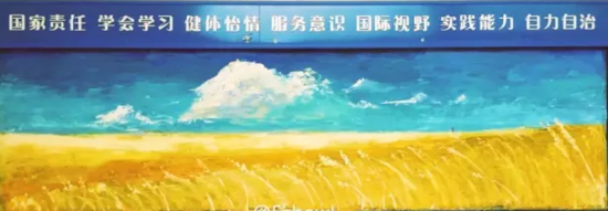 在年段黑板報上,聽著李健的歌《風吹麥浪》,她畫出金色麥田……