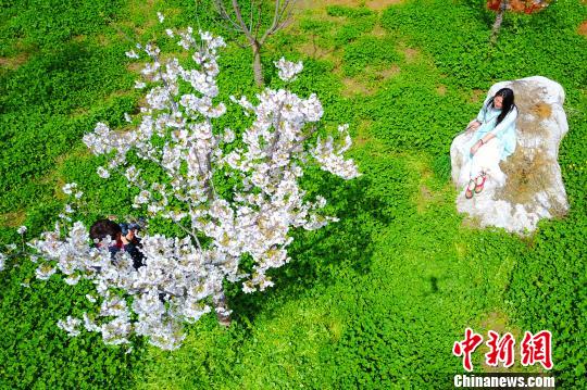 一位游客拍攝“櫻花照”。 周星亮 攝