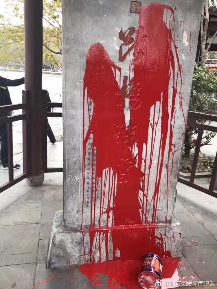西湖邊斷橋殘雪碑被人潑紅漆 涉事者被抓