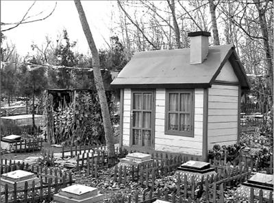 在昌平區的一處寵物墓園內,北青報記者一進墓地,就隱約聽見有循環播放的超度經文。北青報記者發現,有的寵物占兩塊墓,最大的占六塊,至少有12平方米,其中有不少裝修豪華的。這些墓穴有的在墓碑四周修起了木質圍欄;有的搭起了小棚架子,上面掛滿了塑料花;有的甚至修了一座大約兩米高的小木屋,門窗、屋頂一應俱全。據介紹,光是修建這樣的一座小木屋,就需要1萬元左右。