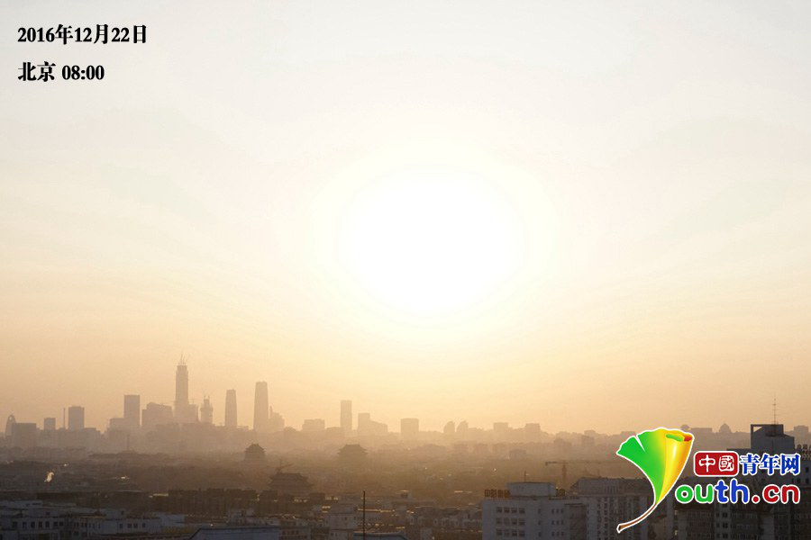 2016年12月22日,整個北京籠罩在濃重的霧霾之中。中國青年網記者 李正穹 攝