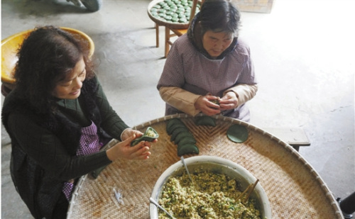 農(nóng)戶正在包清明粿