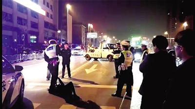 “當時,我們剛好巡邏到此,現(xiàn)場圍了很多人,連120急救車也來了,交警一直對該黑衣女子好言相勸,讓其到交警隊配合調(diào)查,可該女子不予理會,一直抱著交警的腿不放,金水分局治安警察趕到后,她也不聽勸,反而抓住民警的胸卡。逃跑的那名男子不知道是這女子的老公還是男友,她應該也喝了不少酒!毖卜狸爢T說。