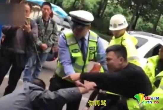 經初查,2017年4月25日上午,廣元市公安局交警支隊直屬二大隊雪峰中隊按照工作安排在轄區(qū)集中開展主要干道交通秩序整治,重點對部分路段亂停亂放車輛及違法停車候客三輪車進行勸離。10時許,當執(zhí)勤輔警盛克林在苴國路第一人民醫(yī)院路段勸離違法停放一輛三輪車時,該三輪車駕駛人突然用自己使用的拐杖猛力戳擊執(zhí)勤輔警盛克林胸口,同時不斷辱罵并用手抓扯盛克林衣領進行推搡,此時輔警盛克林依然保持克制,未作出任何過激行為,隨后該三輪車駕駛人一直不間斷對輔警盛克林進行言語辱罵、人身攻擊,長時間的辱罵導致輔警盛克林未能控制住情緒,脫掉執(zhí)勤警服沖到該三輪車駕駛人面前進行言語還擊,一度情緒失控。后增援警力將輔警盛克林及違法停放的三輪車駕駛人一起帶離現場。