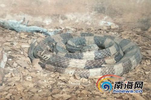 海口金牛嶺公園內(nèi)動物園內(nèi)已經(jīng)死亡很久的金環(huán)蛇。南海網(wǎng)記者 姜飛 攝