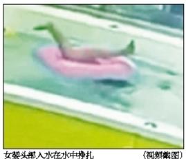 根據事發時的監控視頻,5月16日下午1點15分左右,一名身穿粉色坐式游泳圈的女嬰正在游泳館里的小型泳池內游泳。一開始,女嬰旁邊有一名穿著大褂的工作人員在看護,下午1點16分,這名看護人員一邊看著手機一邊離開了女嬰所在的游泳池,大約10秒鐘后,泳池內的女嬰突然前傾,雙腿朝上,而頭部及上半身翻入水中。