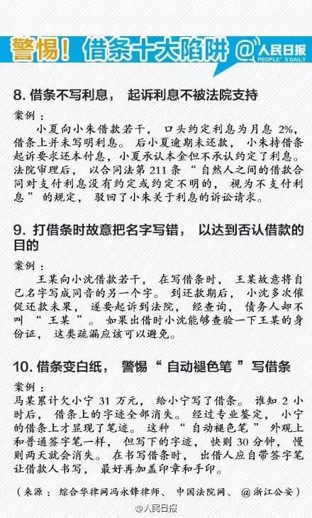 除此之外,債主們還需注意借條中債務人的署名及身份證號碼一定要與身份證保持一致,避免對方寫小名或外號的情況發生;同時,一定要把雙方商定的利息寫進借條,避免到還款時債務人裝傻賴賬。