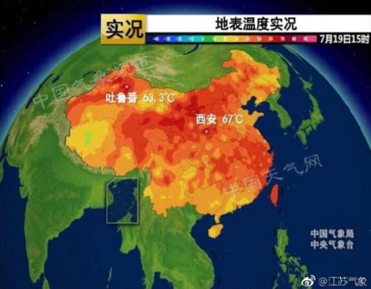 昨天在朋友圈瘋傳的一張天氣圖片。圖片來自網絡地表溫度超過吐魯番