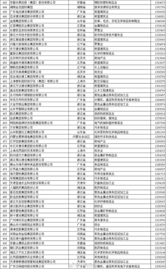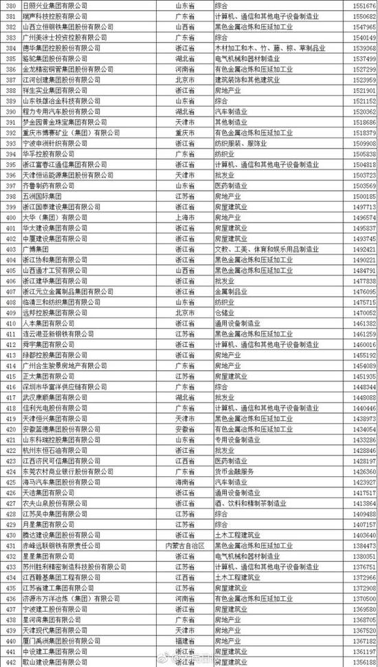 以下為2017中國民營企業500強榜單(來自人民日報微博):