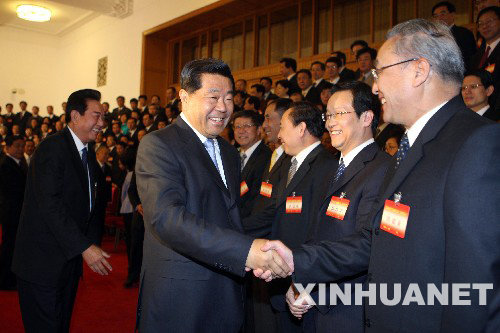 6月3日,海峽兩岸關系協會第二屆理事會第一次會議在北京人民大會堂召開。會議開始前,中共中央政治局常委、全國政協主席賈慶林親切會見全體代表。 新華社記者 劉衛兵 攝