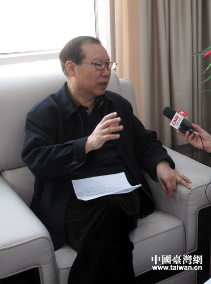 海協會副會長王在希(左)接受記者采訪(中國臺灣網發 穆亮龍 攝)