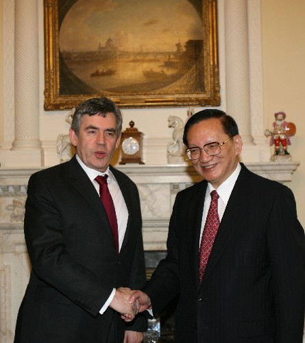 布朗說,英中關系正強有力地向前發展,兩國領導人交往密切,政治互信加深,雙方合作目標明確。英國致力于深化同中國的全面戰略伙伴關系,期待著同中國加強合作。英方對實現兩國貿易新目標充滿信心,希望通過兩國高級別經濟財金對話機制促進雙邊經貿關系,歡迎中投公司等中國企業來英投資。英方愿擴大兩國科技、教育、醫學等領域合作,鼓勵文化交流,全力支持辦好“時代中國”活動。