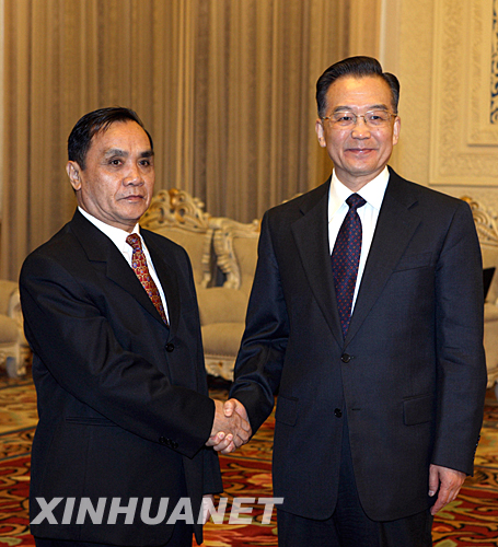 3月24日,國務院總理溫家寶在北京人民大會堂會見老撾國會主席通辛·坦馬馮。 新華社記者姚大偉攝