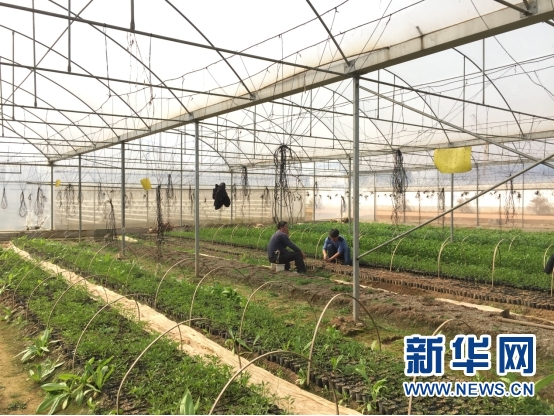 吉州區樟山鎮大江邊蔬菜基地內農民正在培育苦瓜秧苗。(張建明、黃競妍 攝)
