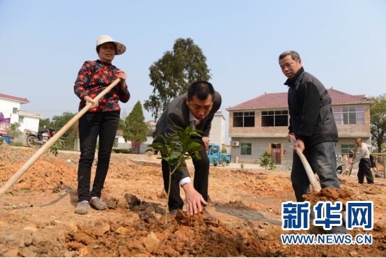 吉州區興橋鎮飛來石村農民在種植井岡蜜柚(張建明、黃競妍攝)