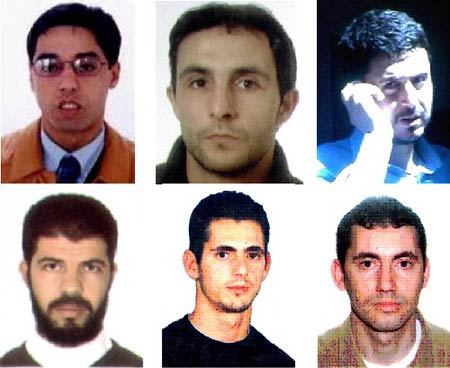 資料圖片:這是西班牙內(nèi)政部3月31日公布的涉嫌參與馬德里“3·11”連環(huán)爆炸案的6名嫌疑人的照片。當(dāng)日,西班牙法官胡安·德?tīng)枈W爾莫簽發(fā)國(guó)際通緝令,在全球范圍內(nèi)捉拿這6名嫌疑人。 新華社/路透