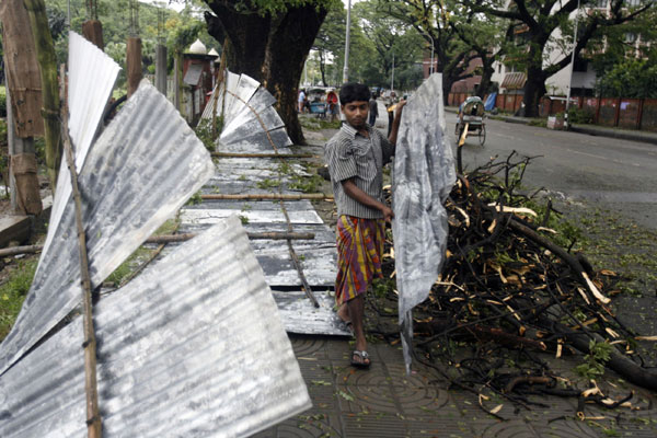 當?shù)仉娨暸_的報道說,有100多條漁船在風暴來襲時被困在海上,由于設(shè)備簡陋,他們沒有收到當局播報的風暴警告。風暴摧毀了沿岸數(shù)千間簡陋的泥草房,將很多人掩埋在下面,大樹被連根拔起,電線桿被刮倒,成片的莊稼和魚塘被毀。在首都達卡,大風甚至把街上廣告牌刮得滿天亂飛。
