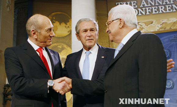 巴勒斯坦民族權力機構主席阿巴斯和以色列總理奧爾默特27日在美國安納波利斯舉行的中東問題會議上,就恢復巴以和談達成一致。雙方在會上表示,將力爭在2008年年底前達成一項內容廣泛的和平協議。 |