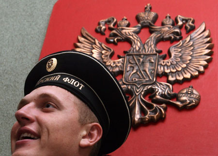 2007年12月2日,一名俄黑海艦隊水兵在基地整裝待發(fā)。法新社